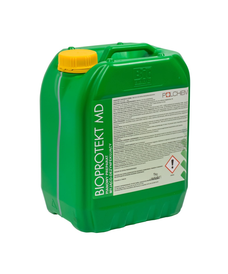 BIOPROTEKT – ein neutrales Mittel, das zum manuellen oder schaumartigen Reinigen stark verschmutzter Oberflächen mit effektiver Desinfektion bestimmt ist. Es ist eine mehrkomponentige, hochkonzentrierte Zusammensetzung, die eine geeignete Mischung aus Tensiden und oberflächenaktiven Stoffen enthält, unterstützt durch Emulgatoren, Korrosionsinhibitoren und Stabilisatoren. Es enthält natürliche Marseiller Seife, die die Wirksamkeit des Mittels deutlich erhöht. Desinfektionsmittel hinterlässt keine Streifen und verleiht den gereinigten Oberflächen Glanz. Anwendungsbereich des Mittels: alle verschmutzten Oberflächen in der Lebensmittelindustrie, Landwirtschaft und im Gartenbau. Durch den Einsatz einer speziell abgestimmten Formel quaternärer Ammoniumverbindungen gewährleisten wir zusätzlich eine sehr effektive und ungiftige Desinfektion. Sicher für unedlen Stahl, Aluminium, Kupfer, Messing, Kunststoffe und Holz. Es eignet sich besonders zum manuellen Reinigen stark verfetter Oberflächen, Maschinen, Kunststoff- oder Metallbehälter, Laborgeräte, Glas und Hilfsgeräte. Es lässt sich sehr leicht ausspülen. Es erhält das Säuregleichgewicht der Haut. Es wird in zwei Versionen hergestellt – verdickt für die manuelle Reinigung und dünnflüssig für den Einsatz in zentralen Reinigungssystemen mit Injektionsdosierung.