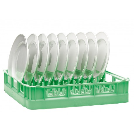 Spülkorb für 12 tiefe oder 18 flache Teller aus Polypropylen.