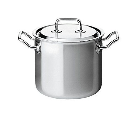 Das Gefäß ist ideal für den Hausgebrauch sowie für Kantinen und eignet sich auch hervorragend für den gastronomischen Einsatz. Dank der wärmeisolierten Griffe müssen Sie keine Angst vor Verbrennungen haben, da diese kühl bleiben. Geeignet für alle Herdarten, einschließlich Induktion. Der Topf ist spülmaschinengeeignet und backofenfest. Ein perfekt passender Deckel sorgt dafür, dass Sie Ihr Essen länger warm genießen können. Im Inneren des Topfes befindet sich eine Skala. Material: 5-schichtiges Verbundmaterial mit einer Außenlage aus induktionsgeeignetem Edelstahl 18/0, einer Innenlage aus Edelstahl 18/10 und einem dreifachen Aluminiumboden.