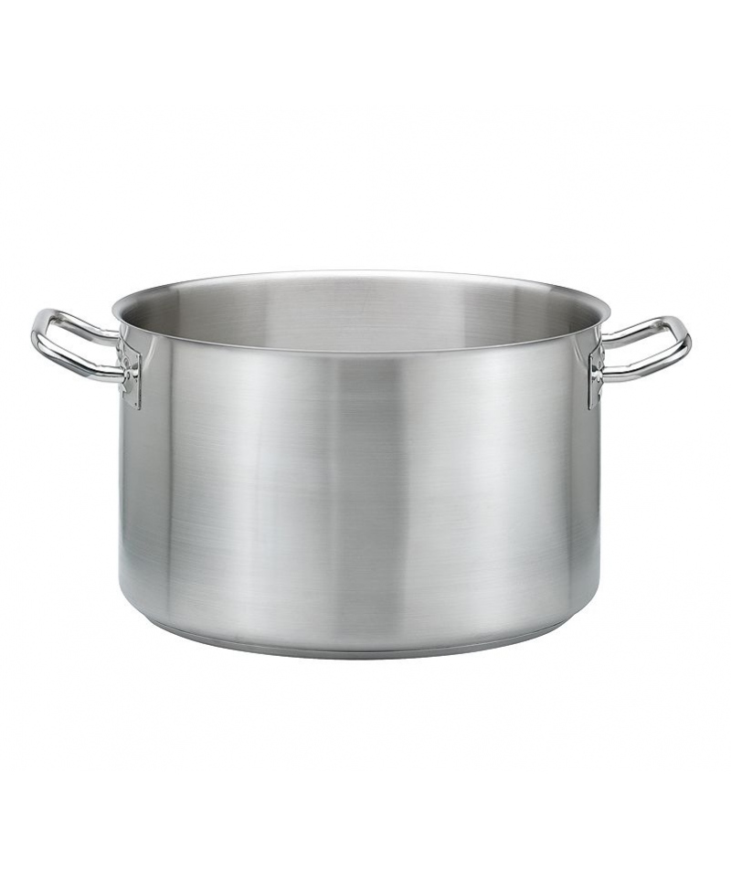 Robuster, aus besten Materialien gefertigter, großer Stahltopf zum Zubereiten von Fleisch. Er verfügt über eine 5-schichtige, verbundene Stahlkonstruktion, die optimale Wärmeeigenschaften bis zum Rand des Topfes gewährleistet und Köchen Zeit und Energie beim Kochen spart. Die Außenbeschichtung besteht aus Edelstahl 18/0, die nächsten drei Innenschichten aus Aluminium und die unterste Schicht aus Edelstahl 18/10. Die Kanten sind perfekt verarbeitet, und der profilierte Rand erleichtert das Ausgießen. Die Griffe bestehen aus Edelstahl 18/0 und sind durch Schweißen perfekt und dauerhaft mit dem Korpus verbunden. Backofenfest und spülmaschinengeeignet. Der Stahltopf wird zusammen mit einem perfekt passenden Deckel geliefert, der das Garen von Gemüse mit wenig Wasser ermöglicht, wodurch Farbe und wertvolle Vitamine erhalten bleiben. Der Topfboden ist profiliert und erleichtert so die Reinigung und Anwendung.