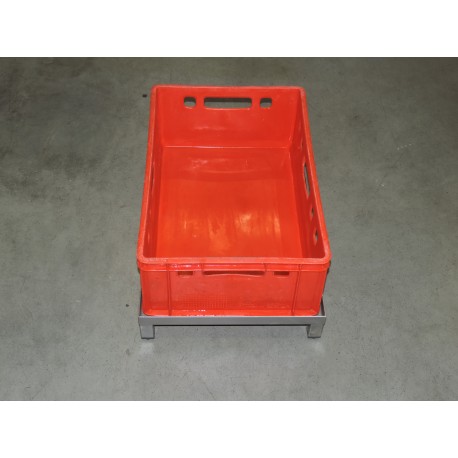 Aus Edelstahl gefertigtes Gestell, passend für EURO-Kisten. Hilftisch, auf dem EURO-Kisten gestapelt werden können. Bestimmt für die Lebensmittelindustrie, einschließlich der Fleischindustrie, und dient zum Absetzen von Kisten mit Lebensmitteln vom Boden.