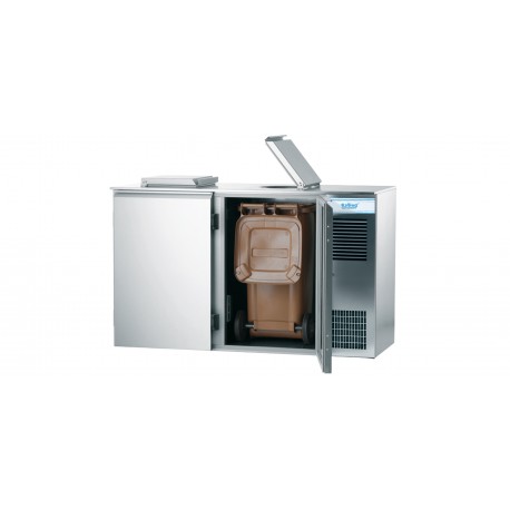 Mit in der Rückwand vergossenem Verdampfer, mit abschließbarem Deckel zum Entleeren von Abfällen, mit digitaler Temperaturregelung. Aggregat mit Kabel und Stecker. Fassungsvermögen: 2 x 120 l Abfallbehälter. Einheitliche Füllung des Gehäuses inklusive Boden mit Polyurethanschaum.