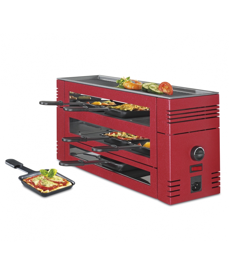 PizzaRaclette6 für 6 Personen, Abmessungen 46 x 16 x 21,5 cm, Farbe rot