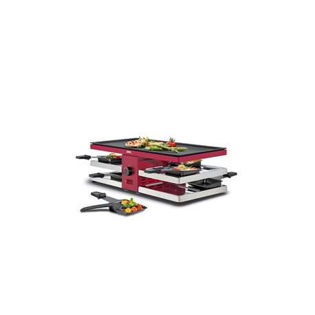Der SPRING Raclette8 Fun Elektrogrill verfügt über ein hochwertiges, rot lackiertes Druckguss-Aluminiumgehäuse. Das Gerät besitzt außerdem eine Antihaft-Grillplatte aus ebenfalls rot pulverbeschichtetem Aluminium. Dies ist die ideale Möglichkeit zum schnellen Grillen ohne Gas oder Kohle und stellt eine gesündere Alternative zum fettfreien Grillen dar.