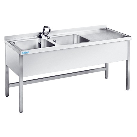 Kühltisch mit 2-beckenigem Waschbecken, Tiefe 600 mm, Rilling AST 0615C 2LTO