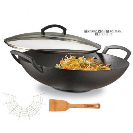 Gusseiserner Wok mit Glasdeckel - 35 cm