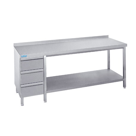 Gastronomietisch, mit Ablage und Schubladen, 1000 x 700 mm, Tischplatte Typ C, Rilling ATZ 0710C S3L0