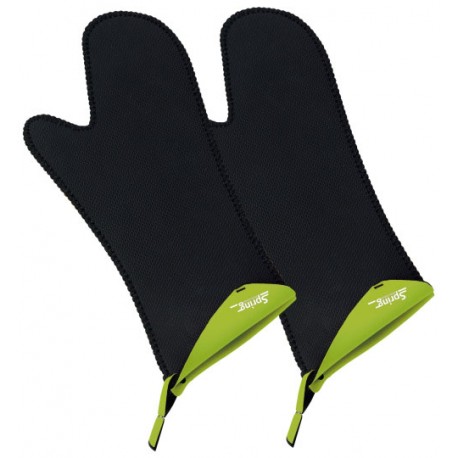 Die Kitchen Gloves and Sleeves Spring Grips schützen Ihre Hände vor dem Kontakt mit heißen Verpackungen und Griffen, Aufläufen, Kuchenformen und Backblechen. Die Handschuhe sind angenehm weich auf der Haut, die Noppenstruktur sorgt für zusätzliche Isolierung und einen guten Halt. Übrigens: Wenn Sie Gemüse oder Pommes frites aus der Tiefkühltruhe holen, verhindern die cleveren Helfer das Auskühlen Ihrer Hände. Hergestellt aus einem revolutionären, hitzebeständigen, schmutzabweisenden Material, geeignet von - 40° C bis + 250° C.