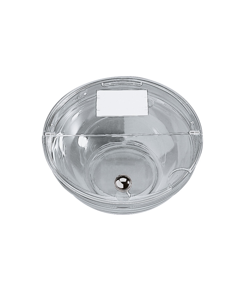 Kippbarer Deckel mit Löffelausschnitt für Salate mit einem Durchmesser von 140 mm. Aus Polycarbonat, hat ein zusätzliches Fenster mit einer Notiz zur Produktbeschreibung. Verchromter Griff. Nicht spülmaschinenfest.