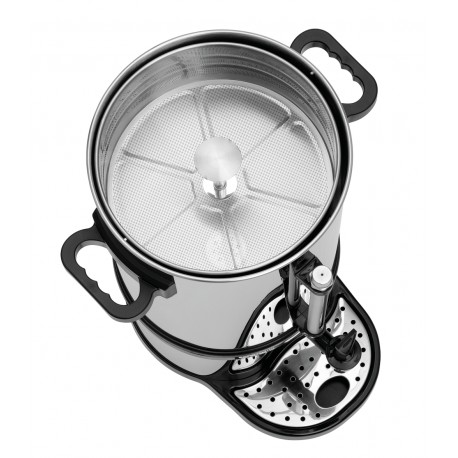 Der HENDI Kaffeebereiter mit Doppelwand und einem Fassungsvermögen von 12 Litern ist die ideale Lösung für alle, die bei der Zubereitung großer Mengen aromatischen Kaffees auf Komfort, Qualität und Funktionalität setzen. Dank der doppelwandigen Edelstahlkonstruktion hält das Gerät den Kaffee lange heiß und reduziert gleichzeitig den Energieverbrauch durch minimale Wärmeverluste.