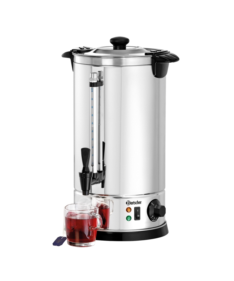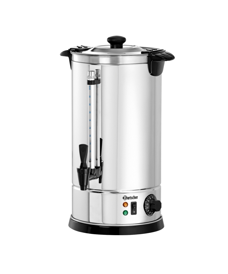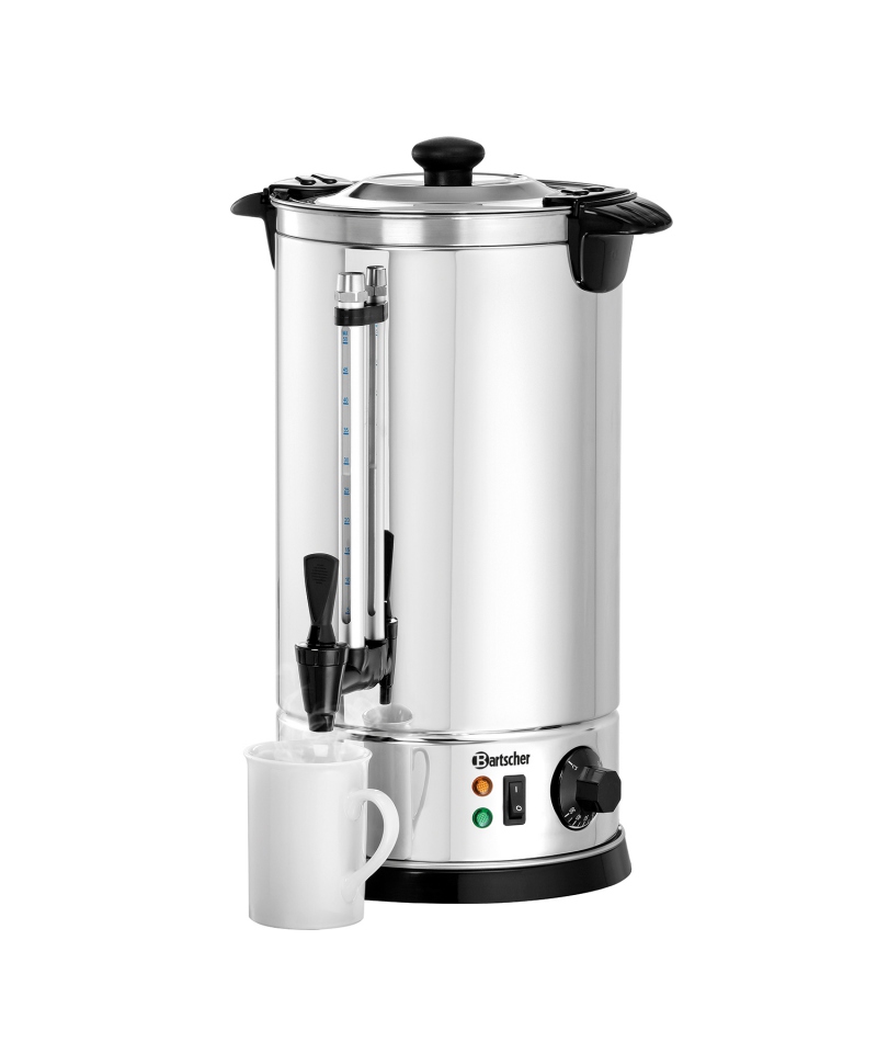 Mit einem Fassungsvermögen von 8,5 Litern ist dieser Wasserkocher ein unverzichtbares Hilfsmittel in Bereichen, in denen eine zuverlässige Erwärmung und Verteilung von heißem Wasser entscheidend ist. Seine robuste Bauweise, die Temperaturregelung und die einfache Bedienung machen ihn zu einem unverzichtbaren Gerät für professionelle Cateringservices, Hotels, Restaurants, Pensionen und überall dort, wo der Bedarf an heißem Wasser wichtig ist.