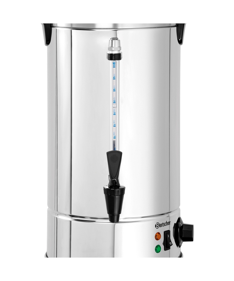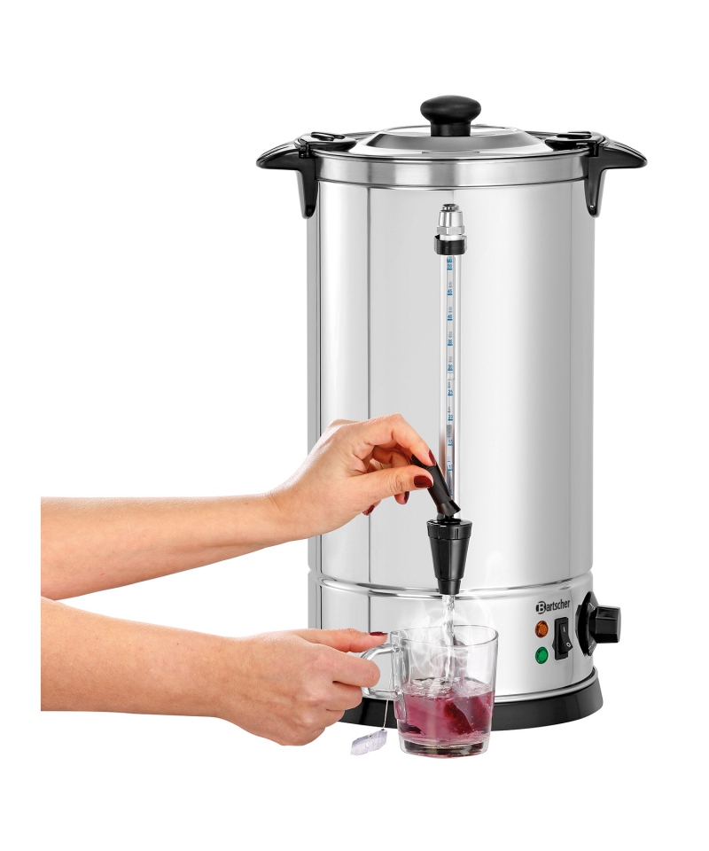 Mit einem Fassungsvermögen von 8,5 Litern ist der Brüher groß genug, um genau die richtige Menge an heißem Wasser zu liefern. Die doppelten Wände sorgen dafür, dass das Wasser länger heiß bleibt, so dass weniger Wasser nachgeheizt werden muss und Energie gespart wird. Dies ist eine äußerst praktische und wirtschaftliche Lösung, vor allem an Orten, an denen häufig heißes Wasser benötigt wird, wie z. B. in Pensionen, auf dem Bauernhof, bei Hotelbuffets oder besonderen Veranstaltungen.