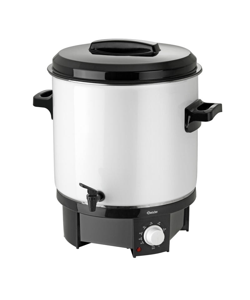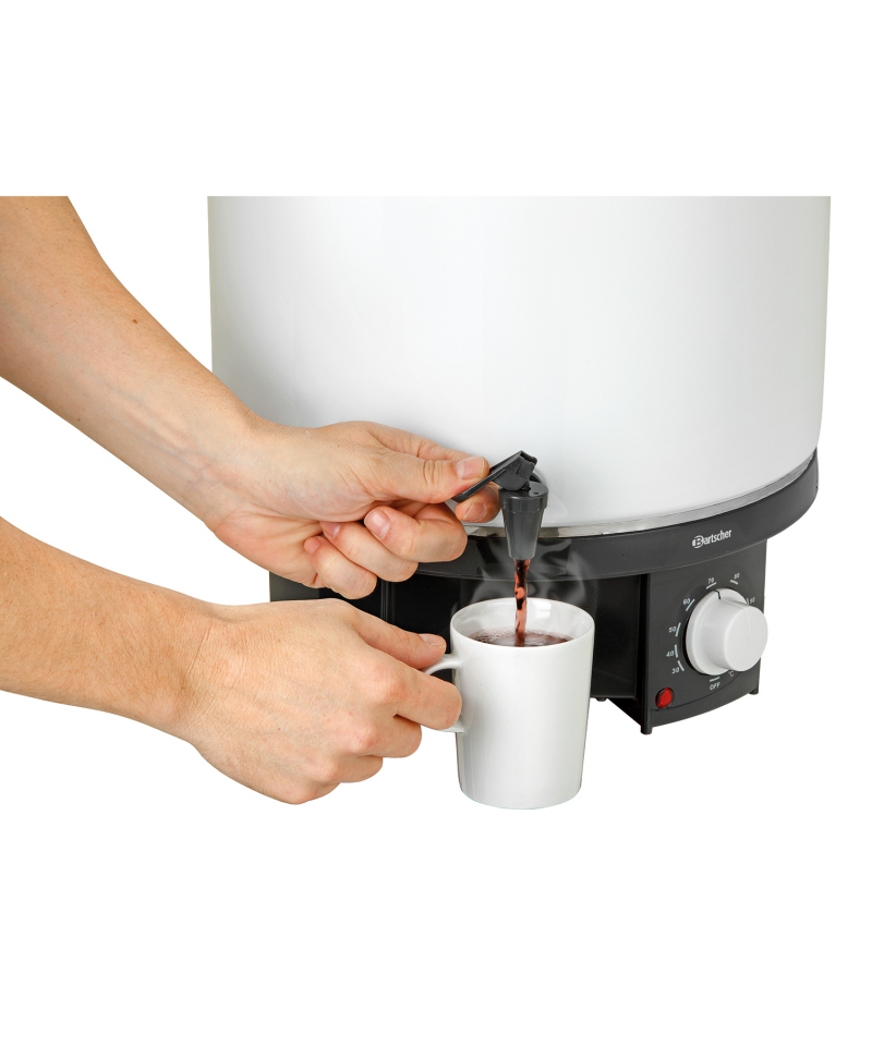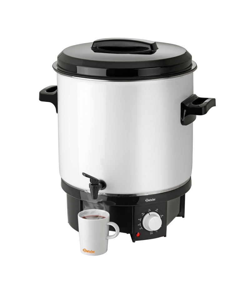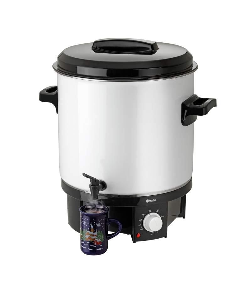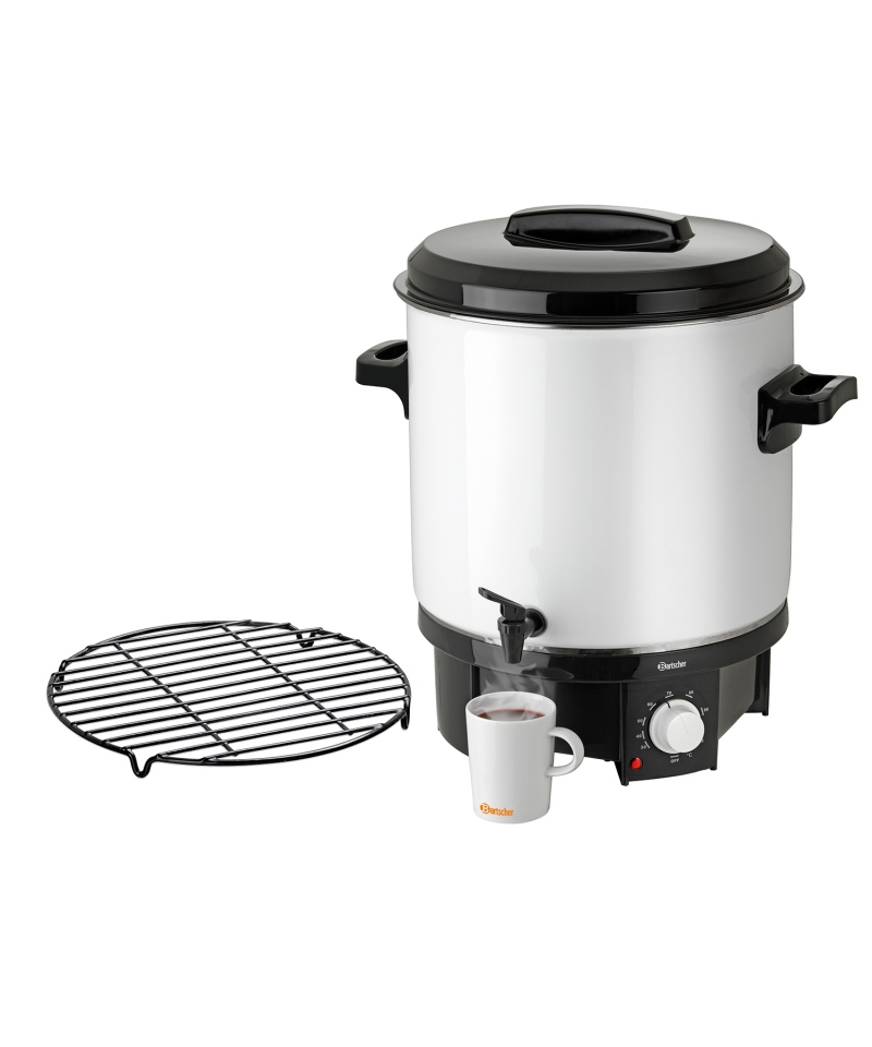 Mit einem Fassungsvermögen von 21 Litern zum Erwärmen von Wein oder Wasser ist dieses vielseitige Gerät ideal für Winterabende und verschiedene Anlässe. Er hat eine Anschlussleistung von 1,8 kW, die eine effektive Erwärmung von Getränken ermöglicht. Er wird elektronisch oder über einen Drehregler gesteuert und eignet sich mit einem Temperaturbereich von 30°C bis 100°C für eine Vielzahl von Anwendungen. Eine Kontrollleuchte informiert über den Erhitzungsvorgang und die Temperaturregelung ist stufenlos oder thermostatisch.