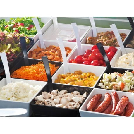 Diese quadratische Schale aus sehr hartem, stoß- und kratzfestem Melamin gehört zur "Float"-Serie von Behältern, d.h. Schalen, die für den Einsatz in der Gastronomie konzipiert sind. Sie präsentiert sich perfekt auf dem Tisch als Schale für Salate, Saucen, Obst, Gemüse, Müsli und alle Arten von Snacks. Sie eignet sich auch als Ergänzung zu einem Buffet oder Frühstücksset. Sie findet Verwendung in Restaurants, Hotel-Buffets, Pizzerien, Hochzeitshäusern und anderen Gastronomiebetrieben. Die Schale ist hygienisch, säurebeständig und temperaturbeständig von -30°C bis +70°C. Sie ist stapelbar und spülmaschinengeeignet. Sie ist mit rutschfesten Füßen an der Unterseite ausgestattet, um die Tischoberfläche vor Kratzern zu schützen. Das verwendete Material entspricht den EG-Richtlinien 1935/2004 und 10/2011 der Europäischen Kommission, die die einschlägigen Vorschriften für Kunststoffe im Kontakt mit Lebensmitteln enthalten.