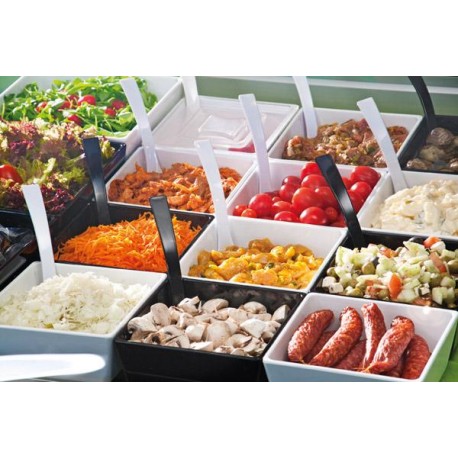 Diese quadratische Schale aus sehr hartem, stoß- und kratzfestem Melamin gehört zur Serie "Float", einer Serie von Behältern bzw. Schalen für die Gastronomie. Sie präsentiert sich perfekt auf dem Tisch als Schale für Salate, Saucen, Obst, Gemüse, Müsli und alle Arten von Snacks. Sie eignet sich auch als Ergänzung zu einem Buffet oder Frühstücksset. Sie findet Verwendung in Restaurants, Hotel-Buffets, Pizzerien, Hochzeitshäusern und anderen Gastronomiebetrieben. Die Schale ist hygienisch, säurebeständig und temperaturbeständig von -30°C bis +70°C. Sie ist stapelbar und spülmaschinengeeignet. Sie ist mit rutschfesten Füßen an der Unterseite ausgestattet, um die Tischoberfläche vor Kratzern zu schützen. Das verwendete Material entspricht den EG-Richtlinien 1935/2004 und 10/2011 der Europäischen Kommission, die die einschlägigen Vorschriften für Kunststoffe im Kontakt mit Lebensmitteln enthalten.