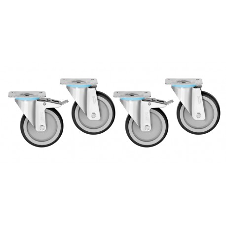 Vier Lenkrollen von Bartscher sind eine praktische und robuste Lösung für das Handling von Lasten bis zu 100 kg. Ausgestattet mit zwei feststellbaren Rollen mit einem Durchmesser von 125 mm sind die kunststoff- und gummibeschichteten Rollen ideal für den Einsatz in Gastronomie und Industrie.