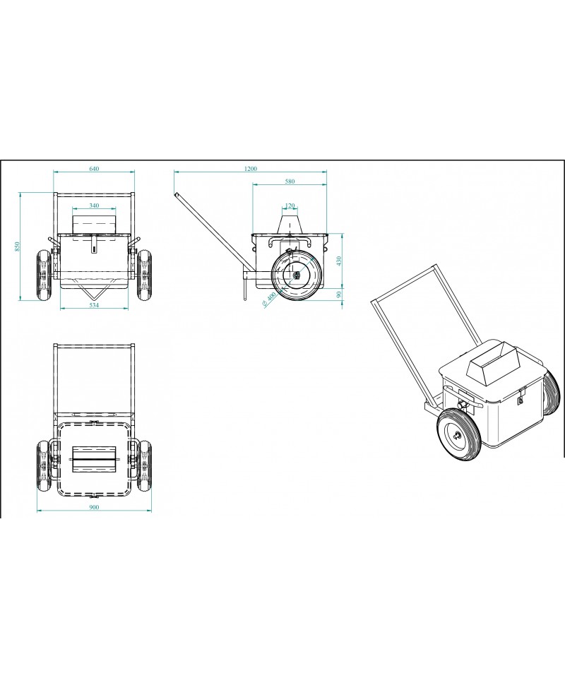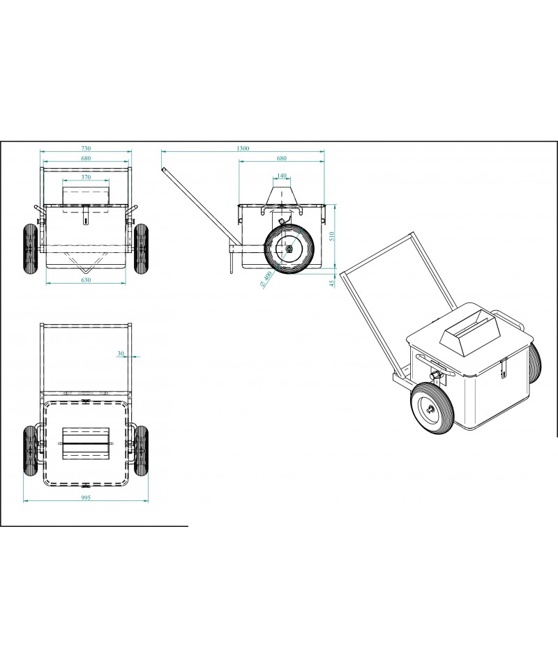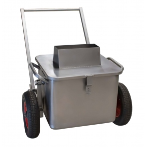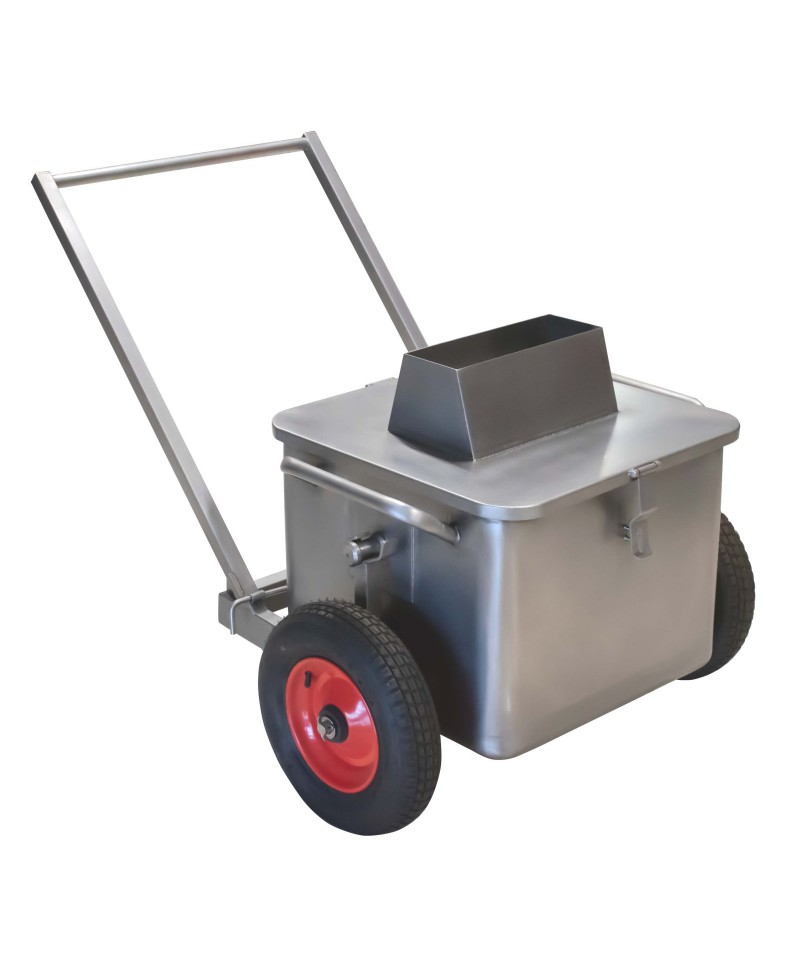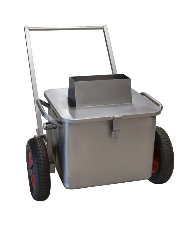 Der Wagen ist mit zwei aufblasbaren Gummirädern ausgestattet, was das Manövrieren und den Transport auch unter schwierigen Bedingungen erleichtert. Der Wagen ist mit einem Deckel verschließbar, und eine spezielle Einfüllöffnung mit Lüftungsgitter ermöglicht das sichere Einwerfen von Abfällen und minimiert gleichzeitig das Risiko der Verbreitung von Verunreinigungen.