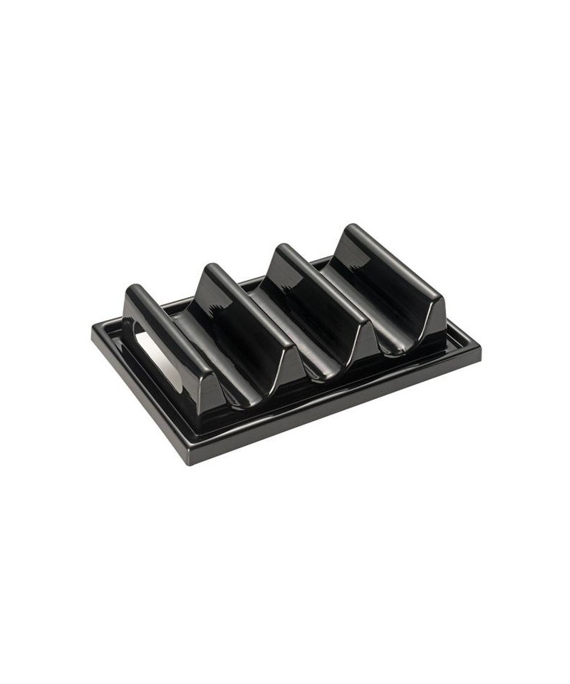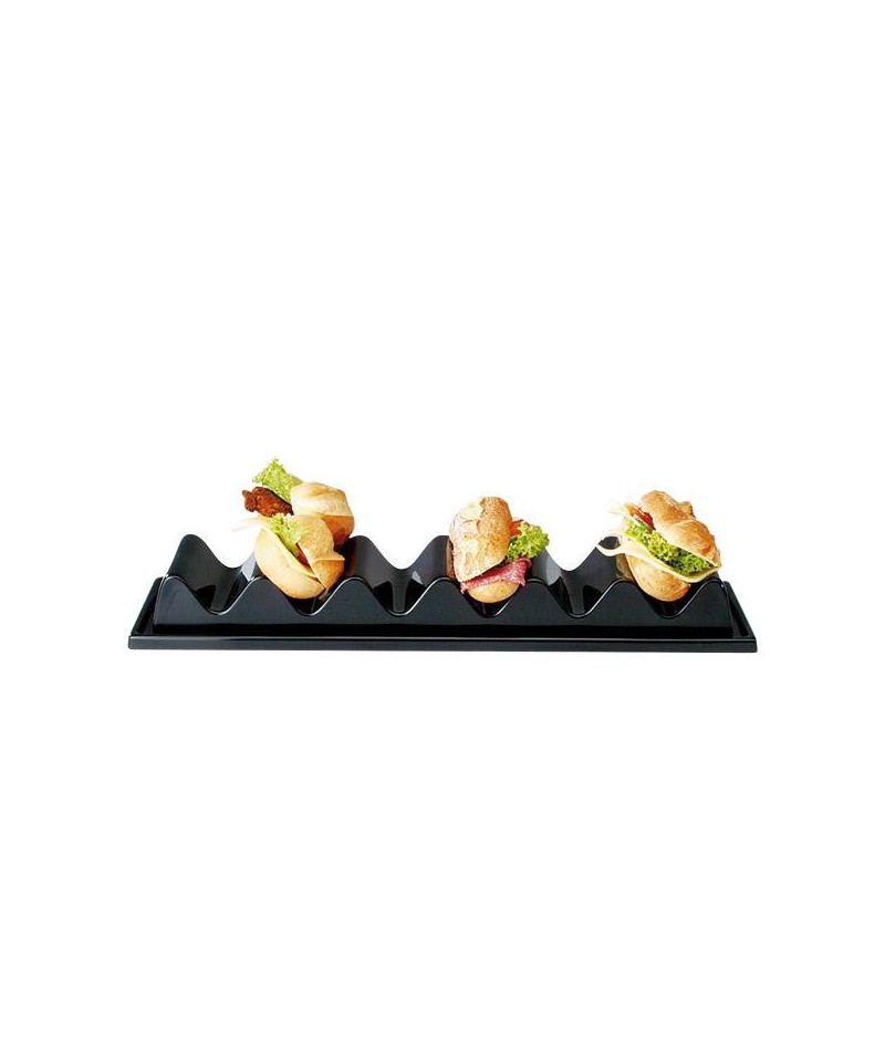Ständer aus schwarzem Polystyrol mit 3 Fächern für die Präsentation von Sandwiches. Anti-Rutsch-Schutz an der Unterseite des Ständers. Geeignet für 6 Brötchen oder 3 Baguettes. Wir empfehlen, ihn mit dem Aufsteller APS-11888 zu kombinieren. Spülmaschinenfest.