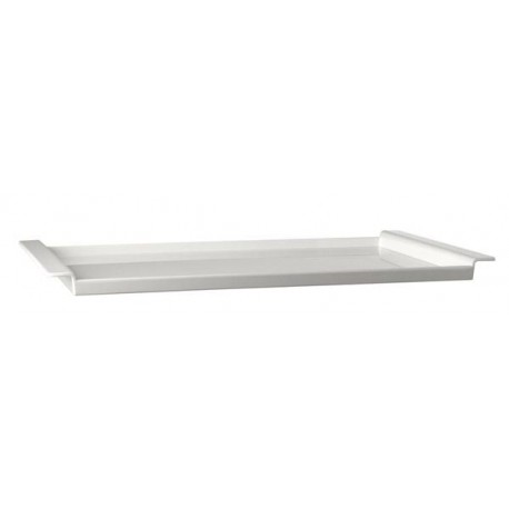 Tablett aus Melamin mit rutschfesten Füßen. Dient als Unterlage für ein Brotschneidebrett. Stapelbar. Hält Temperaturen von -30 bis +70 Grad Celsius stand.