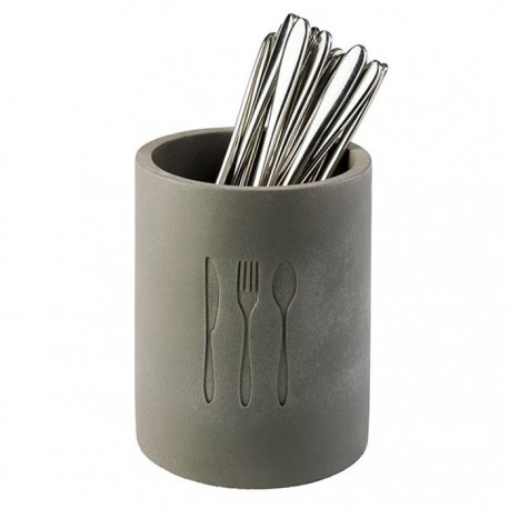 Seine robuste Konstruktion aus Beton sorgt für Langlebigkeit und Stabilität, so dass Sie Ihr Besteck sicher aufbewahren können. Außerdem verfügt der Behälter über ein praktisches Tropfloch in der Mitte, durch das überschüssiges Wasser abfließen kann und sich keine Feuchtigkeit bildet.