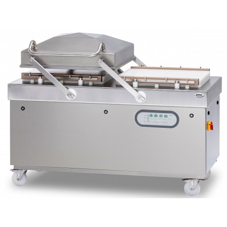 Die Zweikammer-Vakuumverpackungsmaschine BOSS erreicht einen hohen Verpackungsdurchsatz. In einer Kammer findet der Verpackungszyklus automatisch statt, während die andere Kammer in dieser Zeit beschickt wird. Dies führt zu einer optimierten Leistung und einem sehr effizienten Betrieb. Das fortschrittliche Bedienfeld erweitert den Arbeitsbereich. Das Modell kann Teil einer professionellen Verpackungslinie sein.