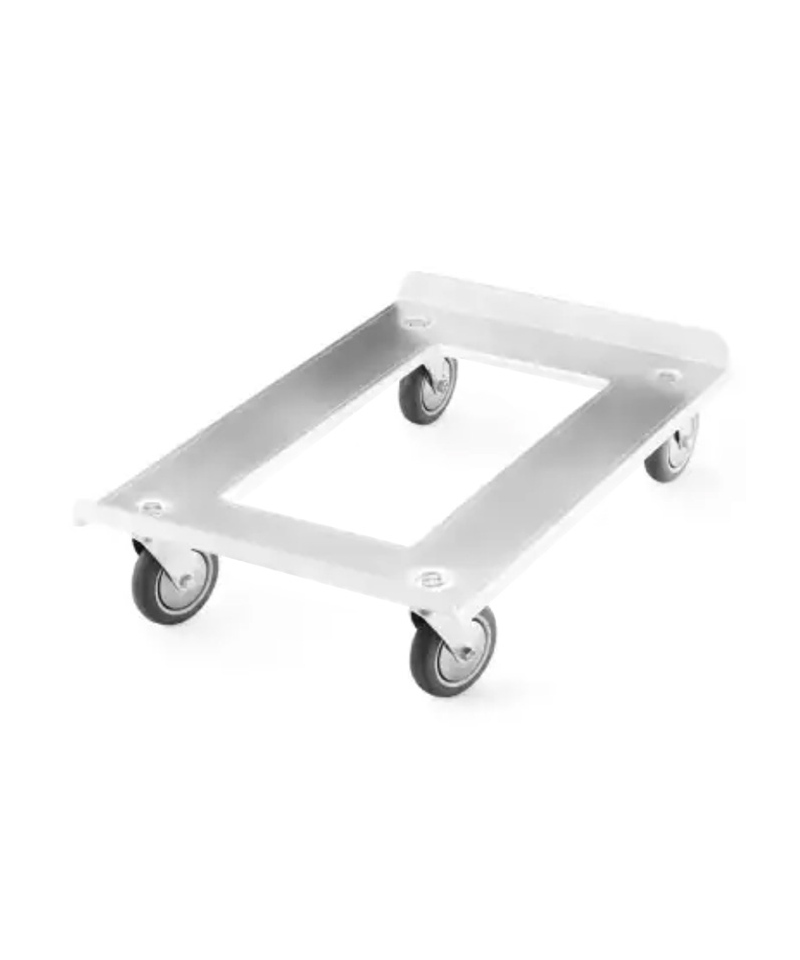 Das Fahrgestell aus Aluminium ist speziell für den Einsatz der Thermobox Combi GN Universal Fronteinschub angepasst. Es ist das ideale Hilfsmittel, wenn es darum geht, die gefüllte Box ergonomisch zu transportieren, zum Beispiel auf dem Weg von der Bäckerei zum Lieferfahrzeug, zum Laden oder vom Parkplatz zum Veranstaltungsort.