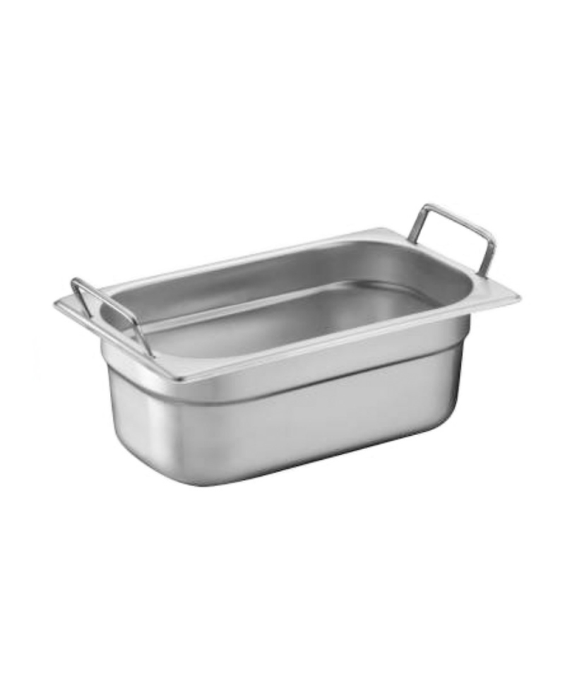 Ein Gastronomie-Behälter aus Edelstahl, 10 cm hoch. Die Größe des Behälters in Gastro Norm 1/4. Es ist sehr stark und langlebig, mit vertieften Griffen, die es leicht machen, den Behälter während des Transports zu tragen. Geeignet für Catering und Gastronomie und auch für Buffets in Hotels und Restaurants. Der Catering-Behälter wurde aus den besten Materialien hergestellt und ist spülmaschinenfest. Die Behälter sind stapelbar, was die Lagerung erleichtert und den Platzbedarf reduziert.