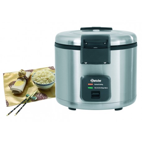 Der Bartscher Reiskocher ist ein äußerst geräumiges Küchengerät, mit dem Sie große Mengen Reis einfach und effizient zubereiten können. Er hat ein riesiges Fassungsvermögen von 8 Litern, was ausreicht, um zwischen 25 und 40 Portionen Reis zuzubereiten. Der Innentopf ist mit einer speziellen Antihaftbeschichtung versehen, die das Kochen erleichtert und für Sauberkeit sorgt. Das Gerät ist in Silber oder Schwarz erhältlich und verfügt über Kontrollleuchten zur Anzeige der Koch- und Warmhaltephasen. Die extragroßen Griffe erleichtern das Tragen des Geräts. Darüber hinaus ist praktisches Zubehör enthalten: ein Messbecher, ein Reislöffel und ein Rührlöffel.
