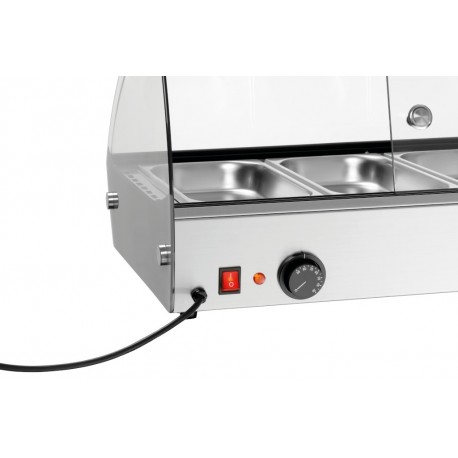 Fassungsvermögen und Organisation: Der Wärmeschrank ist mit 4 1/3 GN-Behältern ausgestattet, die es Ihnen ermöglichen, verschiedene Speisen in einem Gerät zu lagern. Die optimale Tiefe der GN-Behälter von 40 mm ermöglicht die Aufbewahrung verschiedener Gerichte.