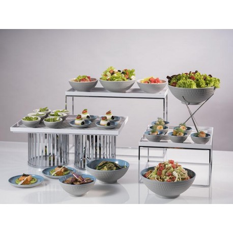 Diese runde Schale aus sehr hartem, stoß- und kratzfestem Melamin gehört zur Behälterserie "Asia Plus", d. h. zu Geschirr, das für den professionellen Einsatz in der Gastronomie konzipiert ist. Der Boden der Schale ist wie bei fast allen APS-Produkten mit einem System von Ringen und Strahlen, Rillen und Vorsprüngen versehen, die es ermöglichen, mehrere Behälter stabil miteinander zu verbinden, um beispielsweise ein vielschichtiges, auffälliges Display für die ästhetische Präsentation Ihrer interessantesten Gerichte zu schaffen. In der Praxis bedeutet dies, dass zum Beispiel alle Schalen als Basis für andere Behälter - Schalen oder Körbe von APS - verwendet werden können. Die Schalen sind hygienisch, säurebeständig und temperaturbeständig von -30°C bis +70°C. Sie sind stapelbar und spülmaschinengeeignet. Das verwendete Material entspricht den Richtlinien der Europäischen Kommission EG 1935/2004 und EG 10/2011, die die entsprechenden Vorschriften und Richtlinien für Kunststoffe, die für den Kontakt mit Lebensmitteln zugelassen sind, enthalten.