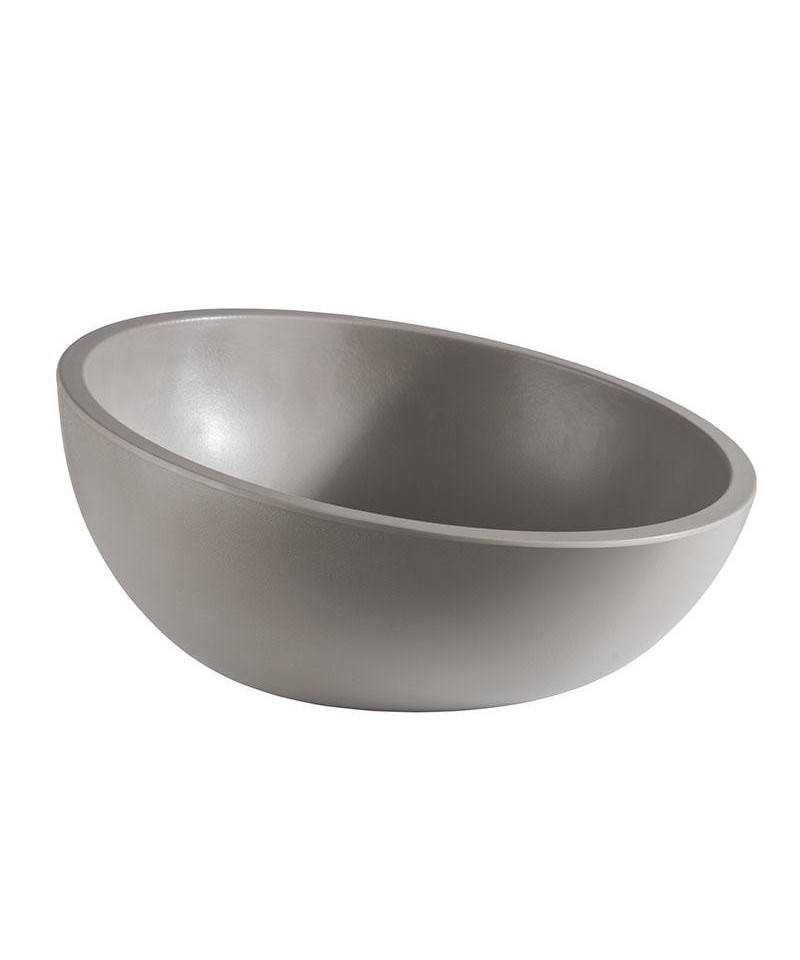 Die schräge Schale besteht aus hochwertigem Melamin mit einer betonähnlichen Oberfläche, die sich perfekt für moderne Kompositionen eignet.