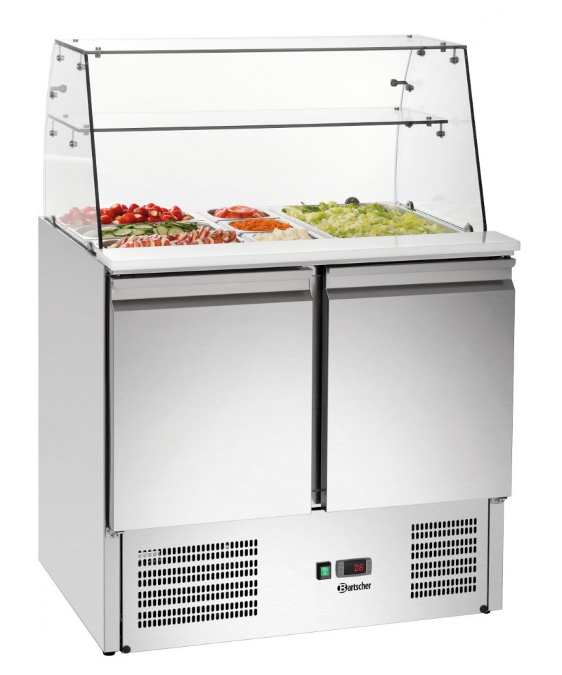 Der 900T2 +GL Glasaufsatz von Bartscher ist ein elegantes und funktionelles Küchen- und Restaurantgerät. Sein zweistufiges Design ermöglicht die gleichzeitige Präsentation einer Vielzahl von Gerichten und erhöht damit seine Vielseitigkeit