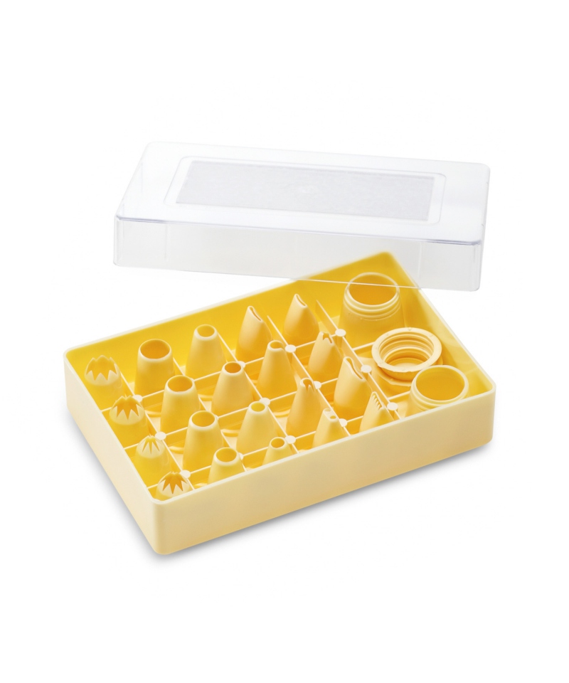 Neue und faszinierende Tortendekorationen mit unserem Set aus 20 Kunststoff-Zuckerspitzen. Ausgestattet mit einem praktischen Koffer, können Sie mit diesem Set kreativ Torten und Gebäck dekorieren.
