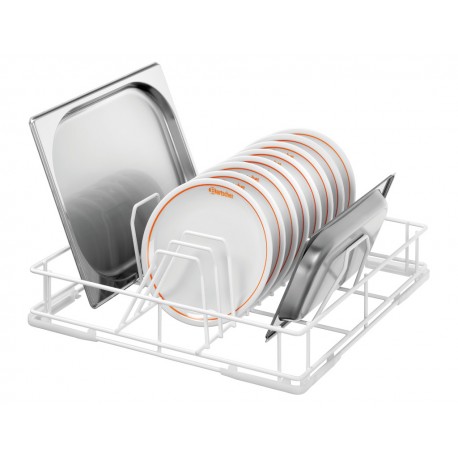 Spülkorb für 12 tiefe oder 18 flache Teller aus Polypropylen.