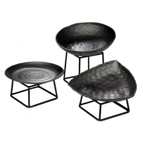 Schale aus Melamin mit runder Form und interessanter Textur. Ihr Aussehen erinnert täuschend an schwarzes japanisches Steingut.