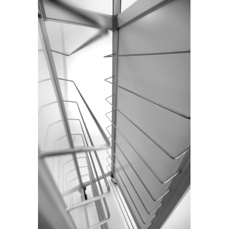 Kapazität für 10 Tabletts: Ausgestattet mit 10 Kufenpaaren mit einem Abstand von 115 mm bietet dieser Wagen genügend Kapazität, um bis zu 10 Tabletts zu lagern und zu transportieren. Dies ist von unschätzbarem Wert für Einrichtungen, die Tablett-Mahlzeiten servieren, wie z. B. Fast Food Bars, Cafés und Restaurants.