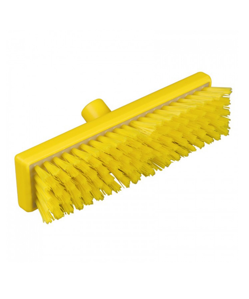 Hillbrush bietet zwei Bürsten für intensives Schrubben mit einer Breite von 305 mm an: B759 und B770. Die Borsten des Modells B759 haben einen Durchmesser von 0,75 mm und stehen 63 mm hervor. Beim Modell B770 sind die Borsten etwas kleiner, mit einem Durchmesser von 0,60 mm und stehen 41 mm hervor. Beide Modelle eignen sich für den allgemeinen, gelegentlichen Gebrauch. Aber worin besteht der Unterschied? In der Praxis eignet sich das Modell B759 besser für größere Flächen mit ebenem Untergrund, wo die größeren Fasern über die Oberfläche springen und den in Vertiefungen versteckten Schmutz nicht erreichen. Das Modell B770 eignet sich besser für die punktuelle Reinigung auf etwas unebenen Oberflächen und kleineren Flächen, wo der Schmutz schwerer zu entfernen ist. Das liegt daran, dass die Fasern des Modells B770 flexibler sind und sich besser an Unebenheiten anpassen, und es auch deutlich mehr pro Quadratzoll gibt, was eine intensivere Reinigung ermöglicht. Empfohlene Griffe sind ALH27 und ALH7.