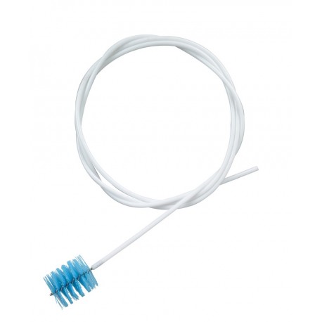 Spiralbürste aus Edelstahl mit 65 mm Ø Borsten aus Edelstahl ummanteltem Polyester, befestigt an einem sehr flexiblen, 3000 mm langen Schaft aus Acetal, ideal zum Reinigen sehr langer Rohre. Dieser Schaft kann sanfte Kurven bewältigen. Siehe auch T/HAN3000.