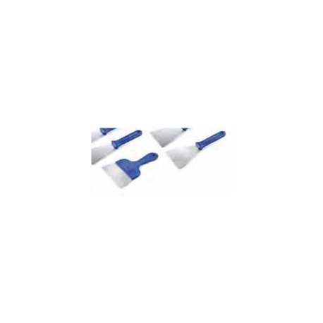 Der abgerundete Griff mit silikonummantelter Öffnung sorgt für einen sicheren Halt und angenehmes Arbeiten. Die Materialstärke von ca. 0,9 mm gewährleistet die nötige Steifigkeit und Präzision beim Schaben, Portionieren und Formen von Teigen, Cremes und Massen.