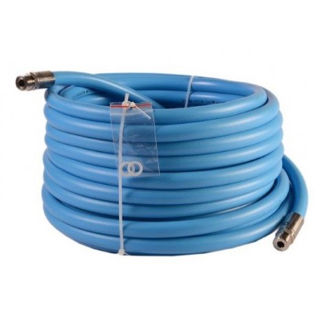 Niederdruckschlauch für die Lebensmittelindustrie. Ideal geeignet für den Netz wasseranschluss sowie nieder-druckige Hygienesysteme. Beständig bis 70 °C und 20 bar. Der Schlauch verfügt über eine doppelte textile Armierung, die ihm ein sogenanntes „Gedächtnis“ verleiht, und besteht aus drei speziellen Kunststoffschichten, die beständig gegen basische und saure Umgebungen sind. Die Außenfläche ist glatt, schmutzabweisend und beständig gegen tierische und pflanzliche Fette.