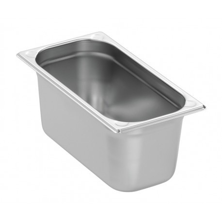 Der GN 1/3 Catering-Behälter von Bartscher ist eine praktische Lösung für die Lagerung und Ausgabe von Lebensmitteln in Großküchen und Gastronomiebetrieben. Mit seinem beachtlichen Fassungsvermögen von 5,75 Litern ist er ideal für die Aufbewahrung verschiedener Lebensmittel in größeren Mengen. Die Stapelbarkeit ermöglicht eine optimale Ausnutzung des verfügbaren Platzes in der Küche. Der Behälter ist aus langlebigem Nickel-Chrom-Stahl gefertigt, dessen matte Oberfläche ihm ein elegantes Aussehen verleiht und ihn vor Beschädigungen schützt. Das Produkt erfüllt die Gastronomienormen nach EN 631 und ist damit das perfekte Werkzeug für die Aufbewahrung und Ausgabe von Speisen in einer professionellen Küche.