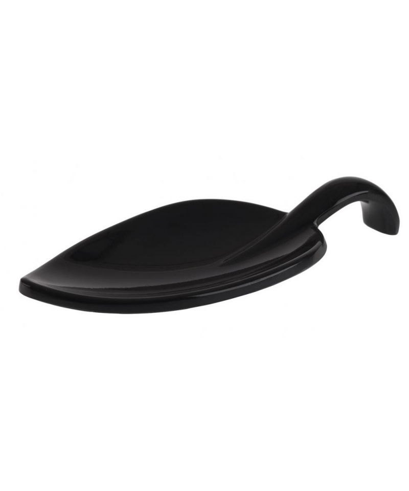 Eleganter und praktischer blattförmiger Löffel aus schwarzem Melamin. Ideal, um alle Arten von Fingerfood-Vorspeisen darin zu servieren.