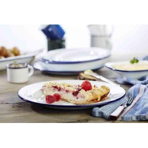 ENAMELWARE Flacher Teller aus emailliertem Stahl weiß und blau 26x2 cm, APS 40666