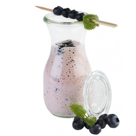 Eine stilvolle Glasflasche mit klassischem Design und einem Deckel. Zu ihr können Gummidichtungen und Klammern gekauft werden. Die Flasche kann zum Servieren von Smoothies, Drinks, Limonade, farbigen Getränken sowie Soßen und Dressings verwendet werden.