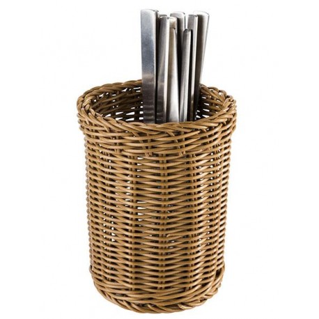 Ein sehr eleganter Besteckkorb mit rustikalem Aussehen. Er ist aus Kunststoff gefertigt, der eine Weide imitiert, und passt in viele Restaurants. Sei es in Strandlokalen oder auf Berghütten. Wir empfehlen ihn auch als Besteckkorb für die heimische Küche. Er ist sehr praktisch, da er aus unzerbrechlichem Material hergestellt ist. Der Besteckbehälter ist spülmaschinenfest.