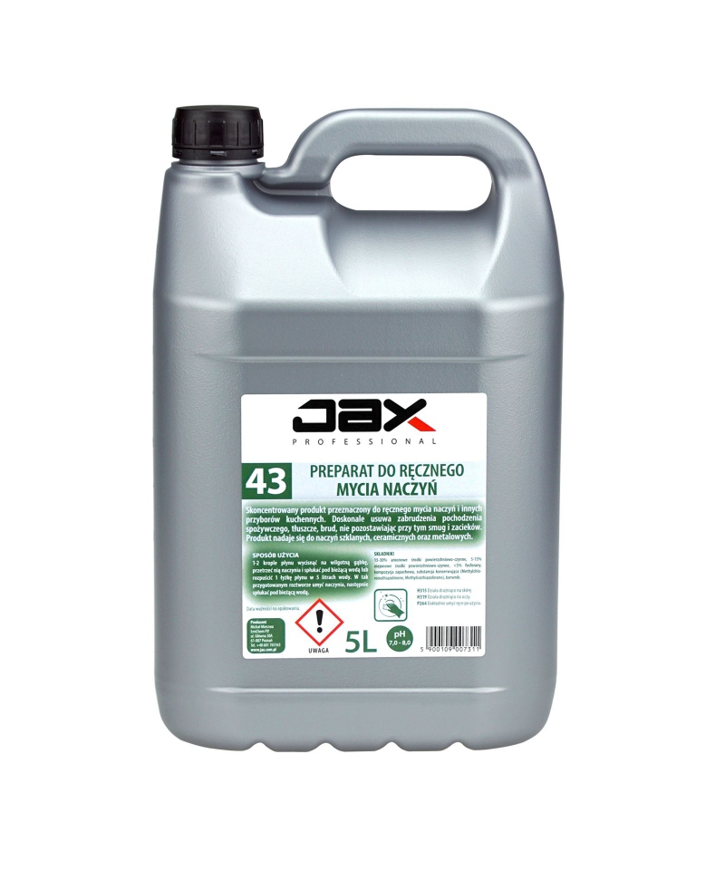 Bestimmungsgemäße Verwendung: JAX PROFESSIONAL PREPARATE 43 ist für die manuelle Reinigung von Glas-, Keramik-, Metall-, Kunststoffgeschirr und Küchenutensilien bestimmt.