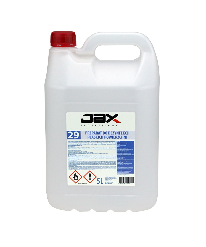 Bestimmungsgemäße Verwendung: JAX PROFESSIONAL PREPARATE 29 ist für die Desinfektion aller ebenen Flächen, Geräte und Böden in Lebensmittel- und Landwirtschaftsbetrieben, Prozesslinien in Industriebetrieben, Tische und Arbeitsflächen in der Gastronomie bestimmt.