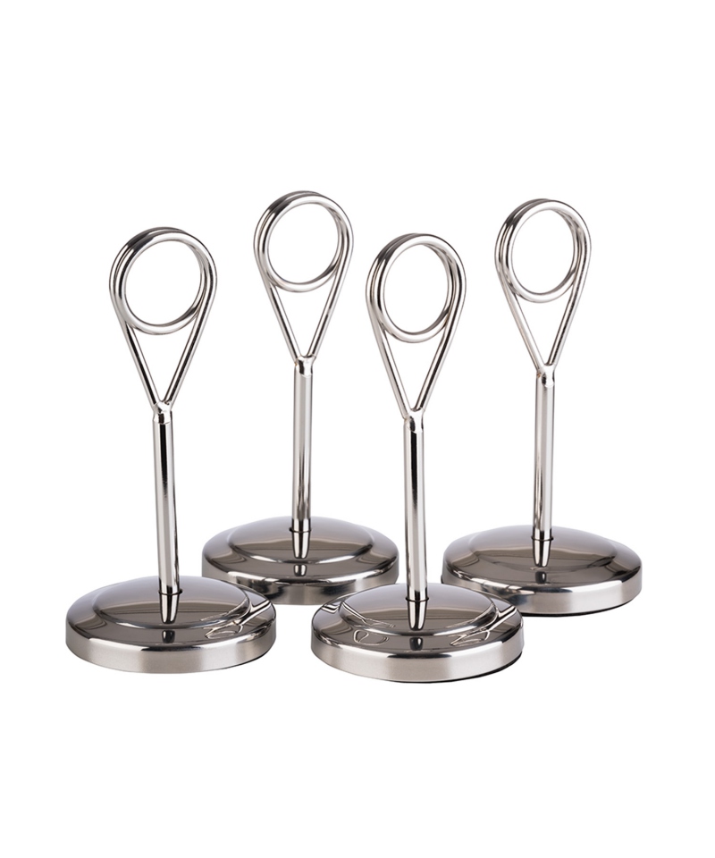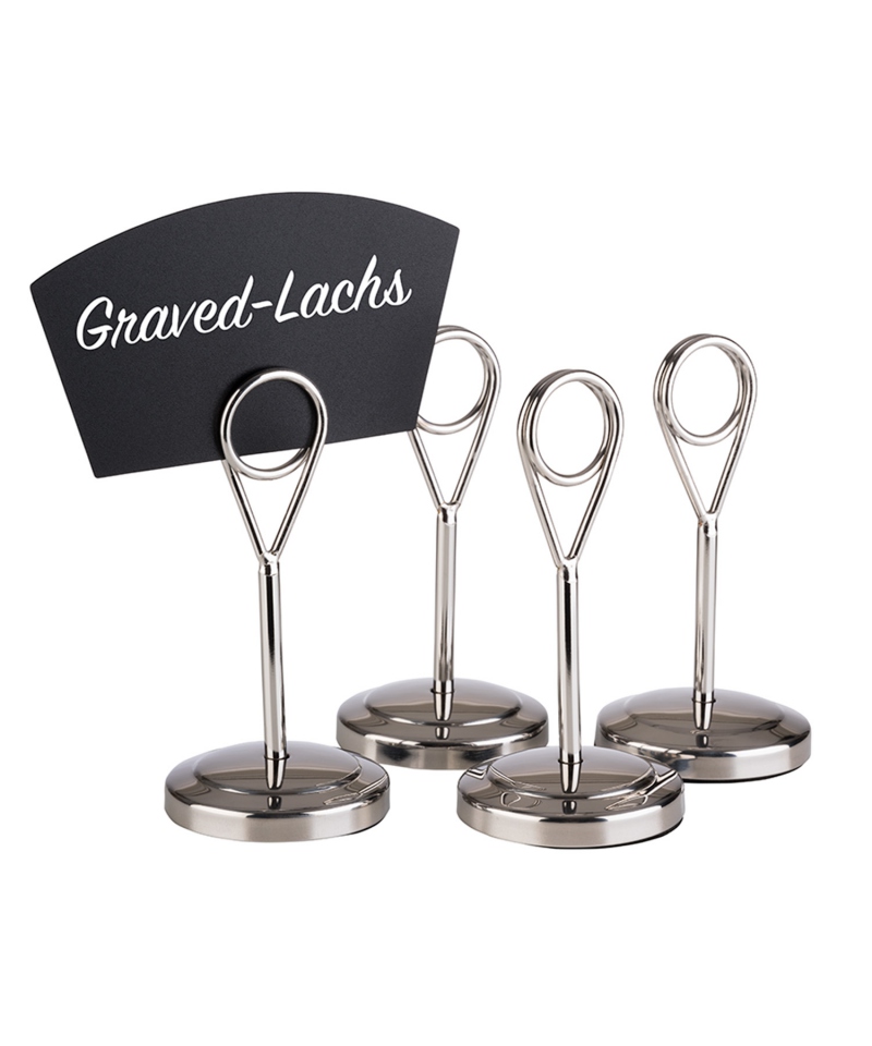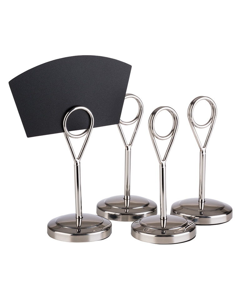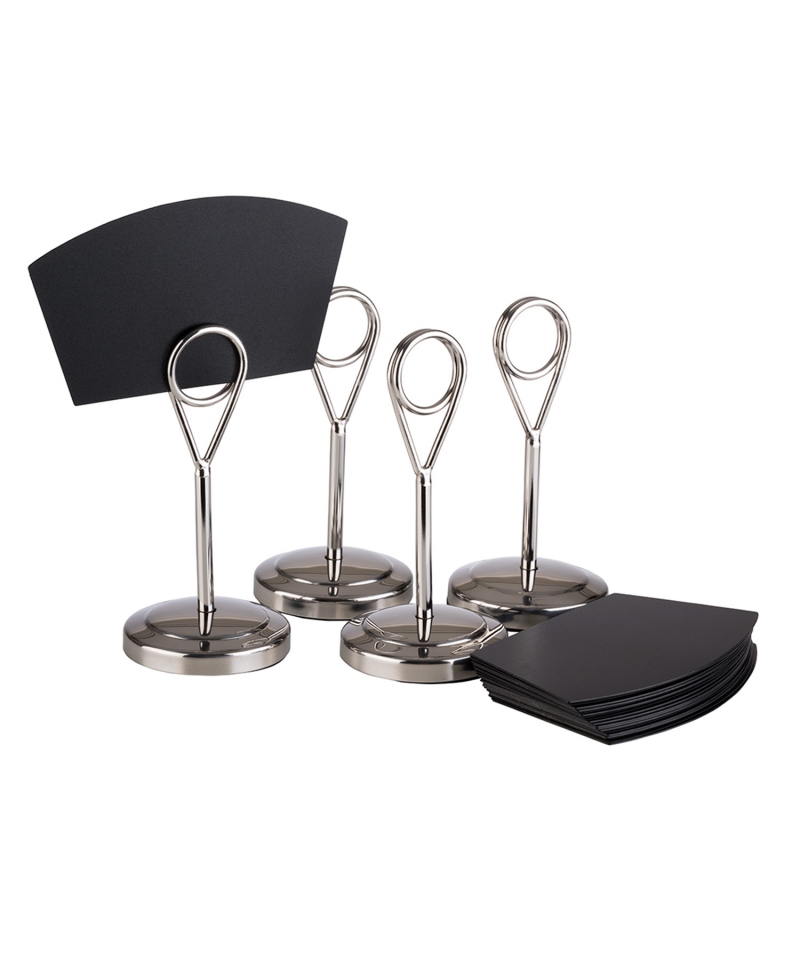 Set aus 4 rostfreien inoxfarbenen Ständern mit 20 schwarzen Etiketten aus Polypropylen.