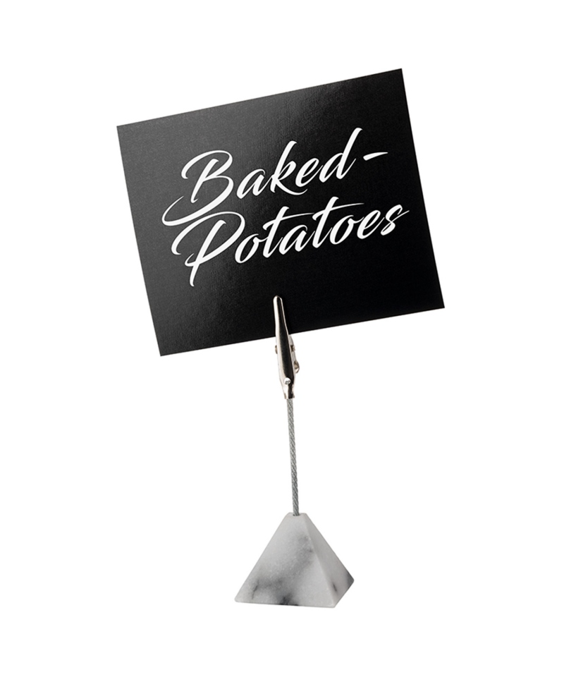 Tischetikettenständer für die elegante Präsentation von Speisenbeschreibungen, Reservierungen oder anderen Informationen für die Gäste. Das Set umfasst 4 Stück.