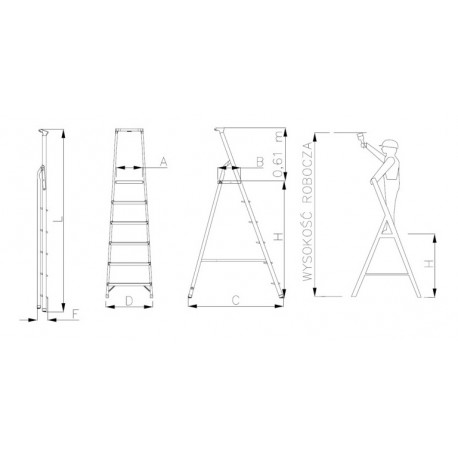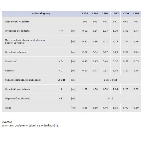 | Max. Stehhöhe auf der Leiter in Gebrauchsstellung [m] | 0,62 | 0,84 | 1,07 | 1,29 | 1,52 | 1,74 |
